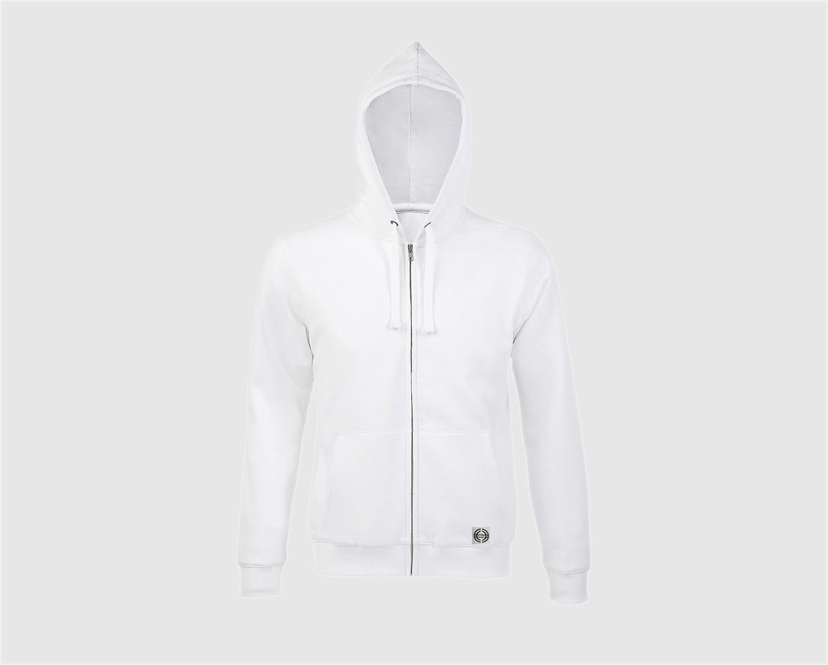 Sudadera capucha clásica con cremallera unisex "inicial pequeña" color blanco